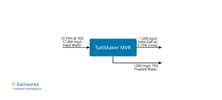 - Treatment Method: ZLD evaporative crystallizer such as the SaltMaker MVR decanter to produce mixed salts.