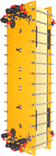 Standard mEDR skids are produced consisting of six FlexEDR E200 stacks, each with a hydraulic treatment capacity of 200 m3/day per stack. Each stack will remove roughly 4,000 mg/L TDS per pass and multiple passes are required for higher removal. The monovalent ion exchange membranes are essential to the solution and Saltworks Ionflux membranes are recommended due to their high monovalent selectivity, robustness, and oxidant tolerance, balanced with their lower cost.