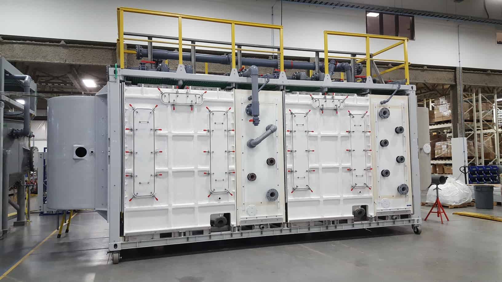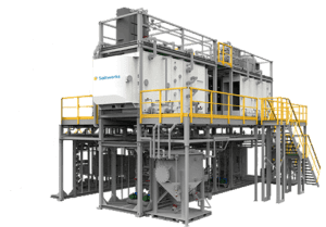 Saltworks answered this challenge with the SaltMaker MultiEffect. It replaced steam and scaling heat transfer surfaces with an air humidification-dehumidification cycle, which evaporates and condenses water in successive effects. Clean water is produced by each effect, with the final effect open to atmosphere to cool the plant. The machine is designed to remain scale-free.