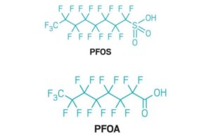 Diagram showing the chemical structures of PFOS and PFOA molecules