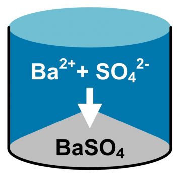 Diagram showing the reaction of barium and sulfate to produce insoluble barium sulfate