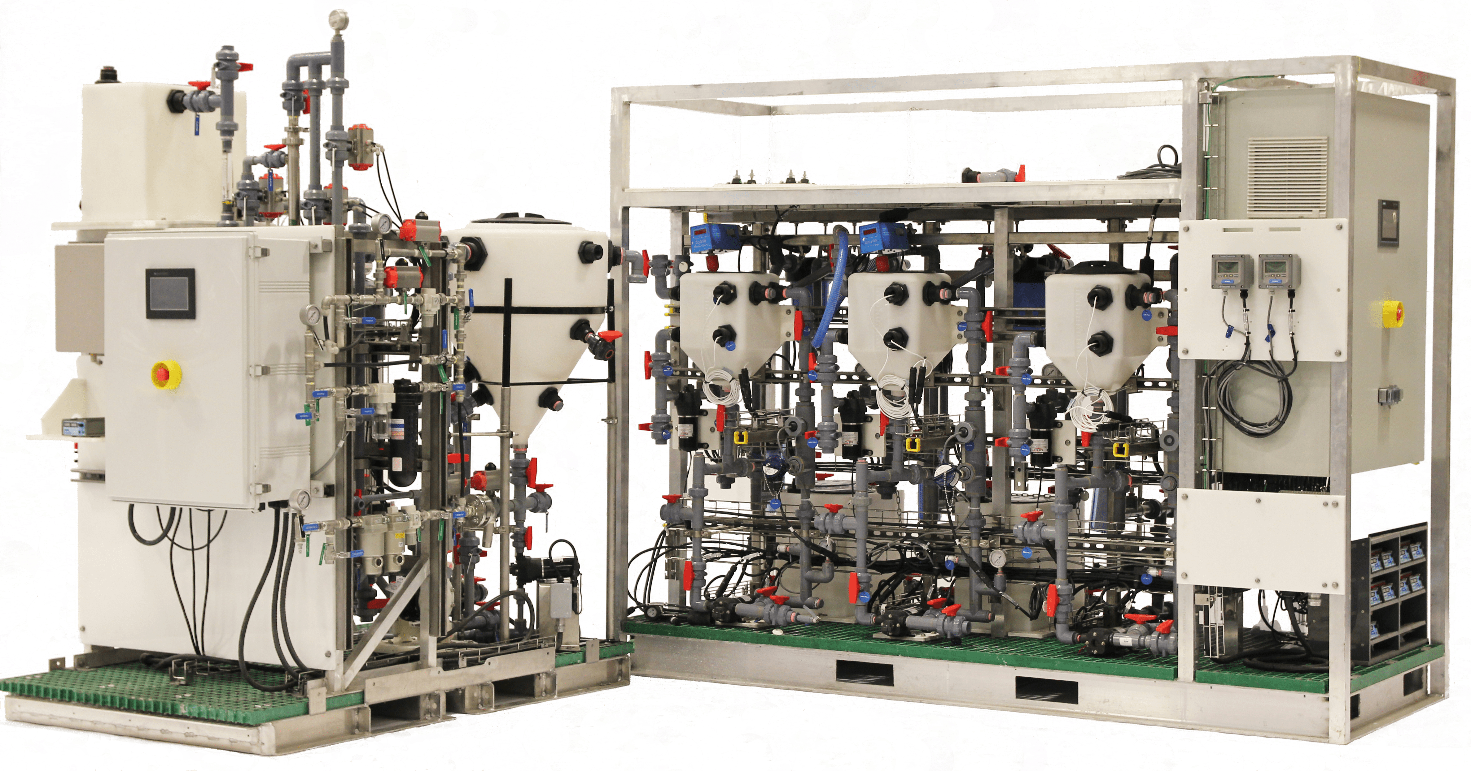 개요 진보된 역 전기 투석 멤브레인으로 브라인과 폐수 이온을 선택적으로 제거 하거나, 유기물 함량이 높은 물을 탈염함. 탈염수에서 이온을 선택적으로 제거함 소형의 스마트한 모듈화 수처리 화학 약품 자동 투입설비 RO브라인을 2 배, 최대 130,000 mg/L TDS 까지 농축 가능 에너지 효울이 우수한 증발/결정기 증기를 대기로 증발 시키는 증발/결정기