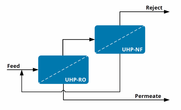 A basic flow diagram depicting the two stage UHP loop process of FusionRO