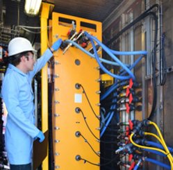 Photo of a Saltworks engineer inspecting a FlexEDR stack used to treat FGD wastewater