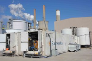 A photo of a Saltworks FlexEDR pilot plant operating on-site at EPRI