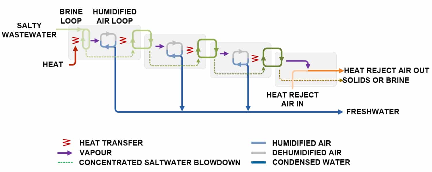 Process flow diagram of a SaltMaker MultiEffect evaporator